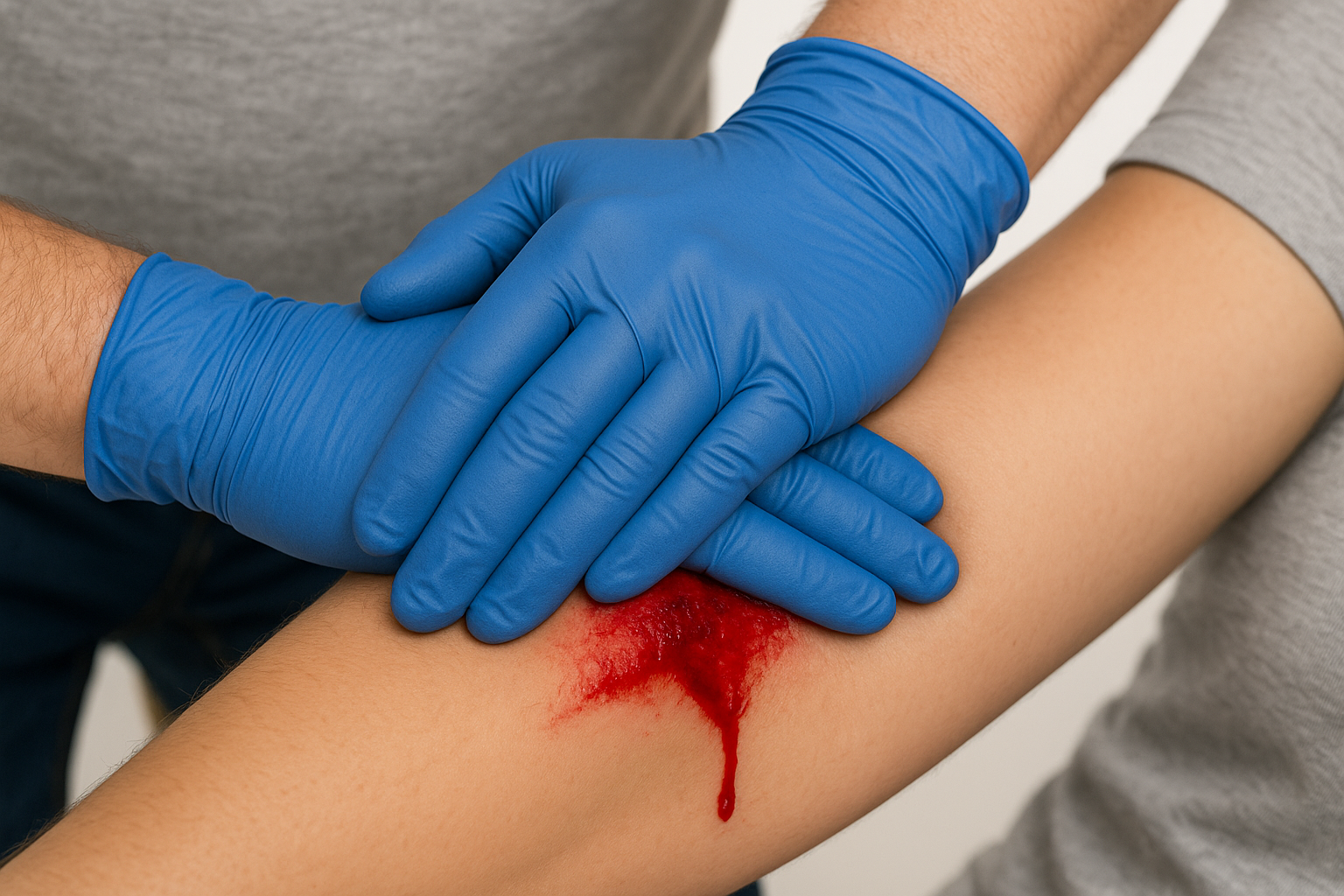 - Aplica presión manual firme y directa sobre la herida protegiéndote con guantes.